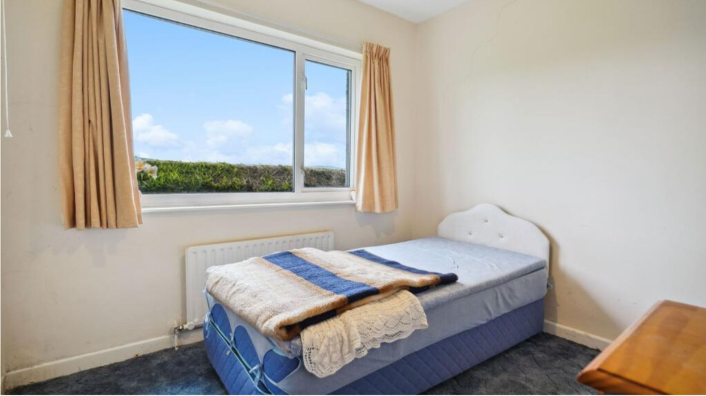 BEDROOM ONE- (3.58m x 3.68m) The main bedroom is a generously sized double room enjoying pleasant views over the surrounding landscape. It offers ample space for wardrobes and additional bedroom furniture.