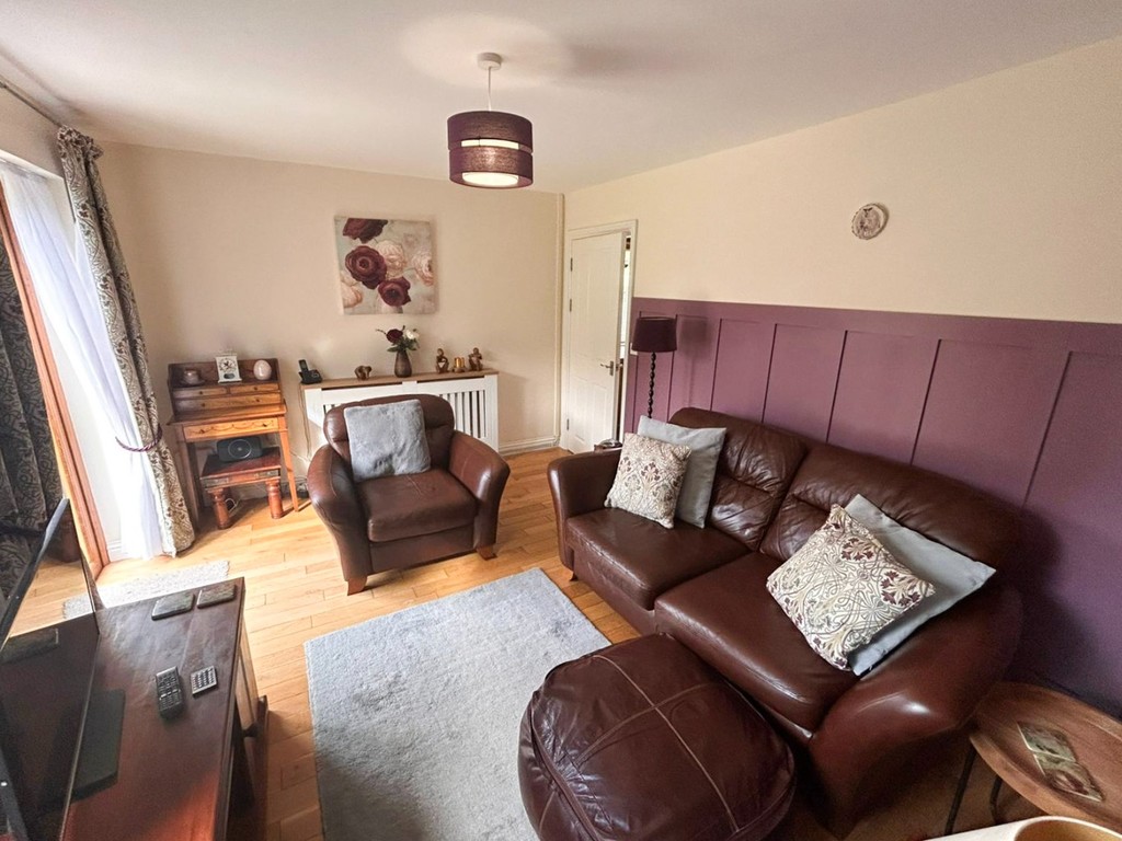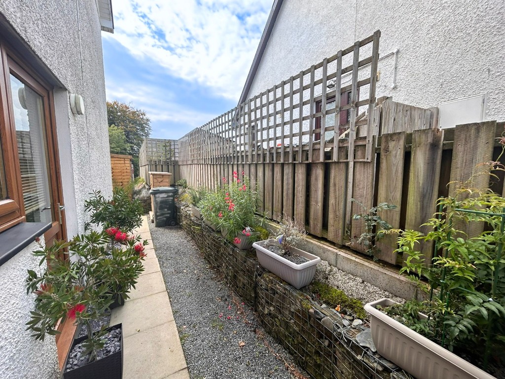 EXTERIOR To the front, a shared tarmacadam driveway provides off-road parking. A side pedestrian pathway leads to the rear garden, which is mainly laid to lawn and offers an ideal outdoor space for relaxation, entertaining, or family activities. The garden also benefits from useful outdoor storage.