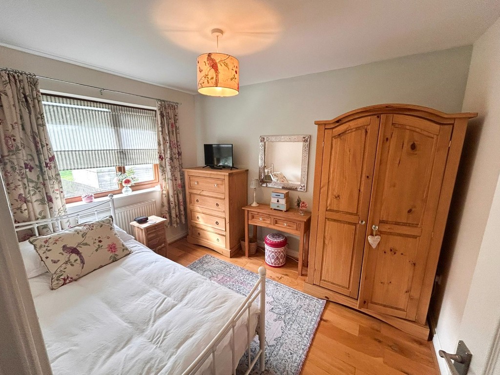 BEDROOM THREE (3.12m x 3.35m) A spacious double bedroom with a front-facing window, built-in wardrobe, double panel radiator, and twin power points.