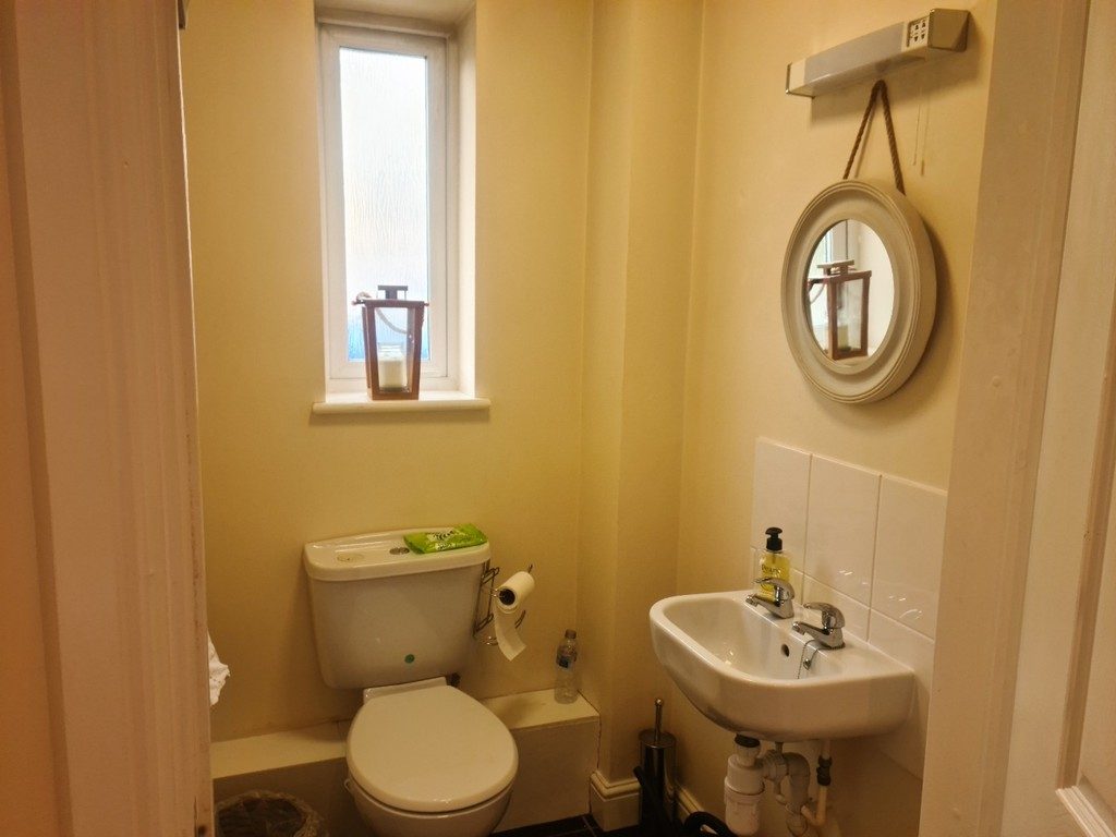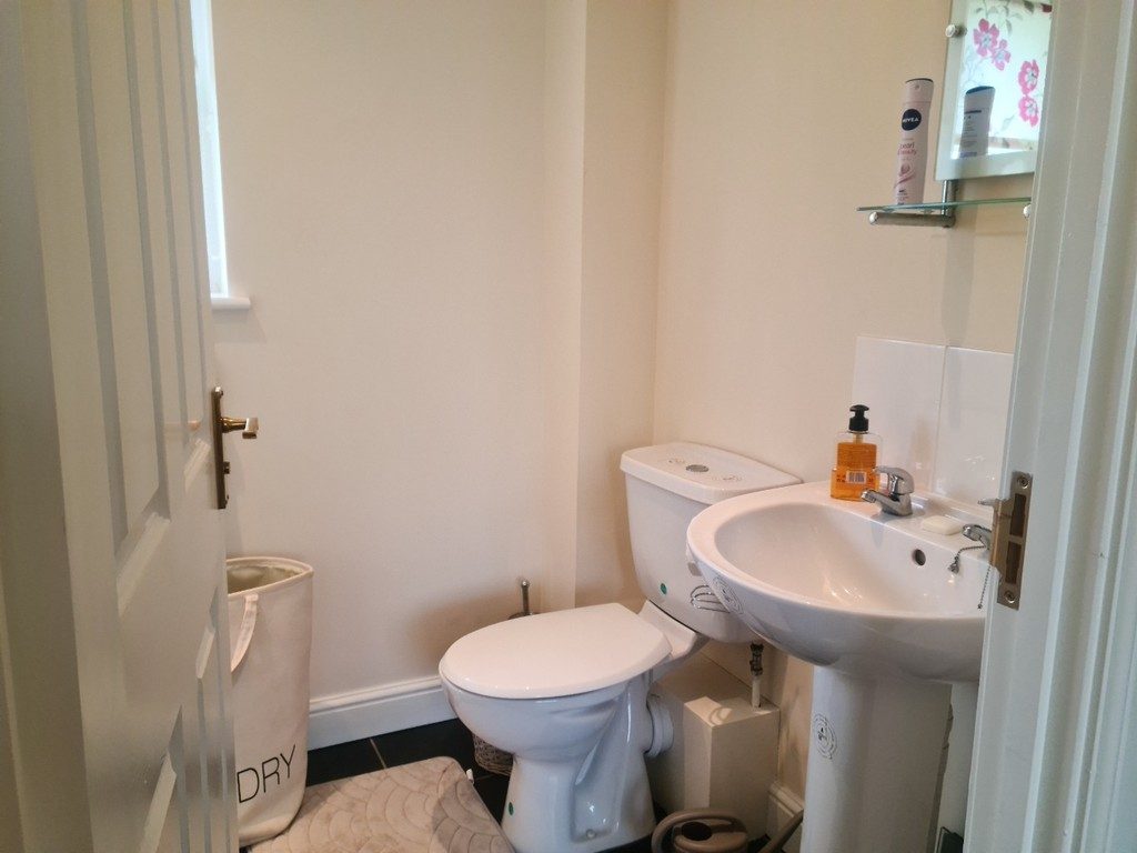 DOWNSTAIRS W.C 4′ 8" x 4′ 0" (1.44m x 1.24m) The downstairs W.C is to the front elevation of the home and has an opaque glazed window. The suite consists of a W.C and sink unit with light and shaver point over.