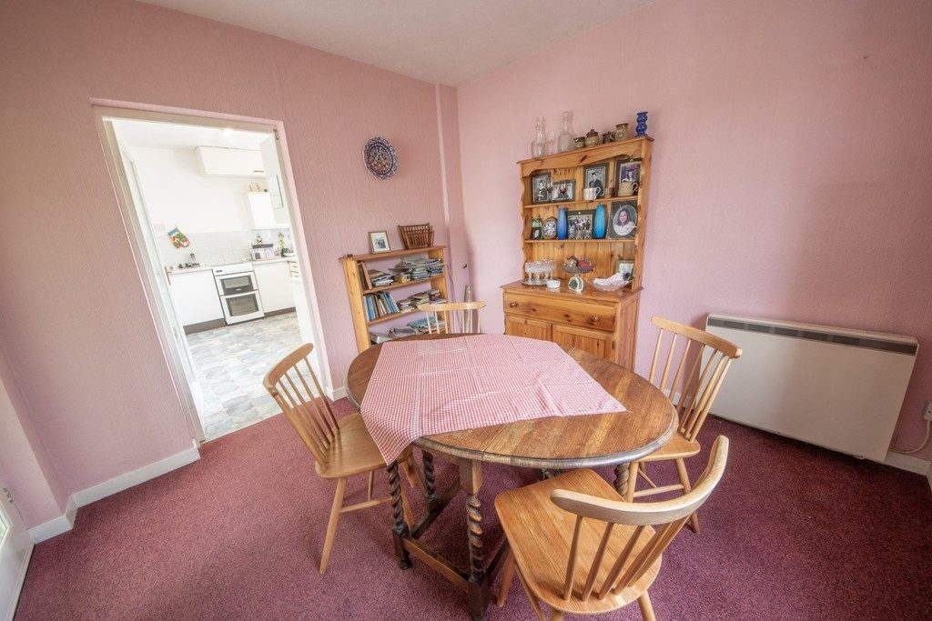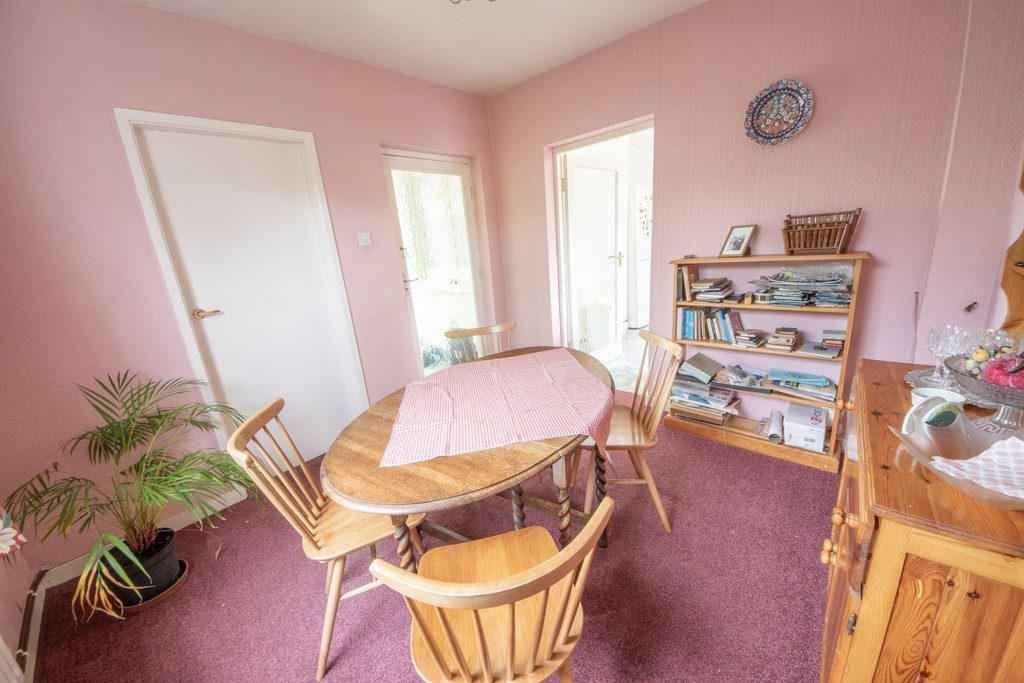 Large dining room finished off in a pink and burgundy mix. Windows to the rear of the property and access to the porch and boiler room.BATHROOM – 1.55m x 1.74m (5’1 x 5’8)