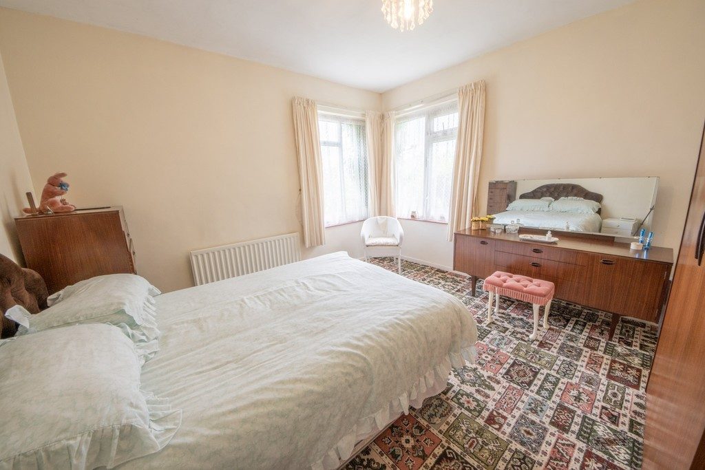 Rear of the property, this room is a large double with corner windows looking out to the garden. Neutral walls with a patterned carpet.BEDROOM TWO – 2.75m x 2.75m (9′ x 9′)