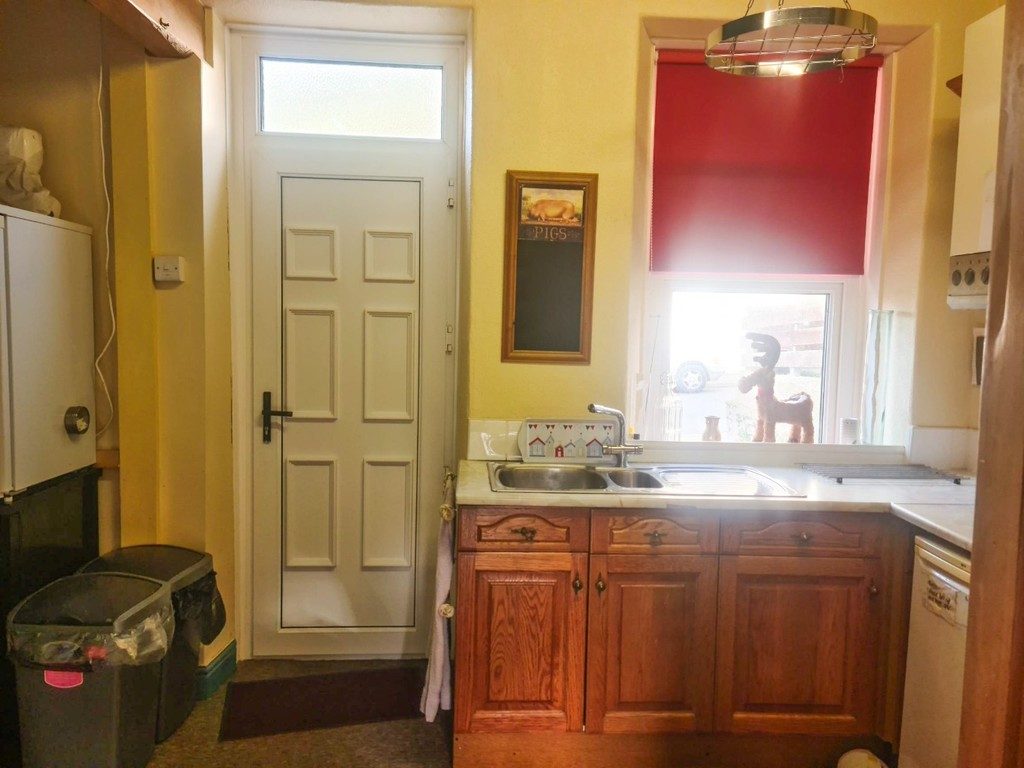Access to the kitchen is through a white uPVC door, providing both security and insulation. Upon entering, the kitchen is on the left, while the dining room is located to the right, offering a convenient and practical arrangement for both meal preparation and dining. The kitchen features wooden base and eye-level units, providing ample storage,White marble-effect counter tops provide a durable and easy-to-clean surface for meal preparation. The kitchen is equipped with a stainless steel sink and drainer, offering functionality and durability for dish washing and food preparation. A Worcester combi boiler is located in between the top units in the kitchen, providing heating and hot water for the home. The kitchen is equipped with a built-in oven and an electric 4-ring hob for stove top cooking. White tiles line the walls to the the kitchen serving as a practical and easy-to-clean backdrop. A small double-glazed window in the front of the kitchen allows natural light to filter in, creating a pleasant atmosphere. Lighting is provided by a single electric strip light, ensuring that the kitchen is well-lit for all your culinary endeavors. The dining area is generously sized, providing ample space for a large dining table and seating. It is flooded with natural light, thanks to a substantial bay window that graces the front of the room. This bay window not only brings in abundant daylight but also adds a touch of elegance to the space. At the far end of the room, a retro style radiant gas heater provides warmth and comfort during the colder months. This room is an ideal setting for family gatherings, dinner parties, and everyday meals.RECEPTION (5.9m x 4.21m) RECEPTION (5.9m x 4.21m)