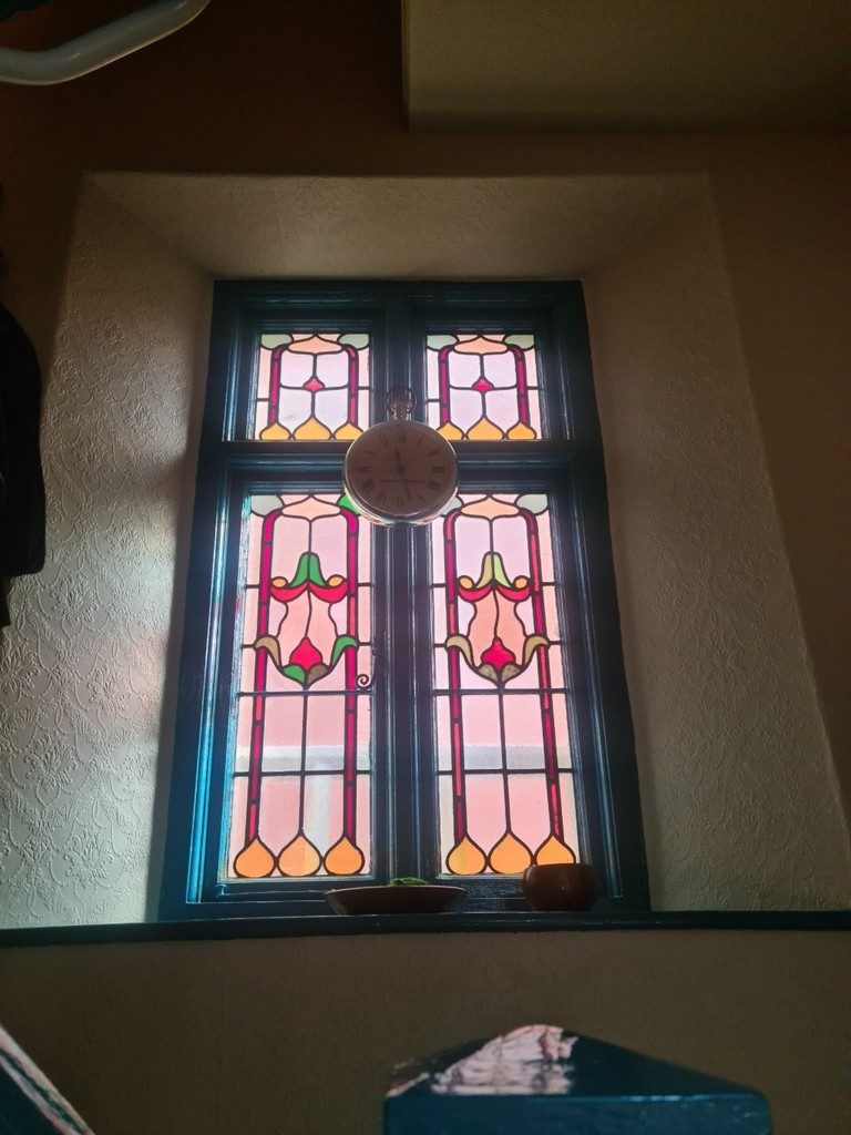 The staircase to the second floor is conveniently situated to the left of the reception area, providing easy access to the upper levels of the home. About halfway up the staircase, there is a very charming and colorful stained glass window. This stained glass window is not only a beautiful decorative element but also a source of vibrant, filtered light that adds a touch of elegance and uniqueness to the stairwell.FRONT BEDROOM (3.90m x 3.2m) FRONT BEDROOM (3.90m x 3.2m)