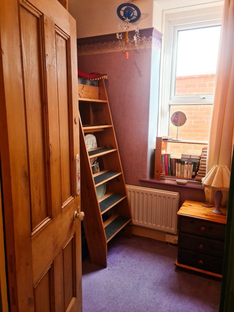 This is a compact bedroom, best suited for purposes such as a nursery, office, or dressing room and benefits from a built in Cabin Bed being three foot six. Its size makes it ideal for specialized use .Access to the room is through a wooden door, providing a sense of separation and privacy, A small double-glazed window to the rear of the room allows natural light to filter in, creating a pleasant atmosphere within the space.ENTRANCE TO THE SECOND FLOOR ENTRANCE TO THE SECOND FLOOR
