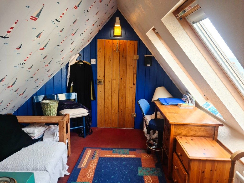 However, it’s the two large Velux windows to the rear of the room that steal the show. Through these windows, you’ll be treated to stunning vistas of the sea and Constitution Hill, a breathtaking view that changes with the time of day and the seasons.Tucked away at the end loft space, a wooden door leads you to the bedroom and bathroom, ensuring your privacy and comfort in this serene and uniquely charming environment. Whether you’re seeking a cozy hideaway, an artist’s studio, or a space to simply revel in the beauty of nature, this second-floor loft area in the Victorian house offers a remarkable opportunity to experience the best of past and present.However, it’s the two large Velux windows to the rear of the room that steal the show. Through these windows, you’ll be treated to stunning vistas of the sea and Constitution Hill, a breathtaking view that changes with the time of day and the seasons.Tucked away at the end loft space, a wooden door leads you to the bedroom and bathroom, ensuring your privacy and comfort in this serene and uniquely charming environment. Whether you’re seeking a cozy hideaway, an artist’s studio, or a space to simply revel in the beauty of nature, this second-floor loft area in the Victorian house offers a remarkable opportunity to experience the best of past and present.