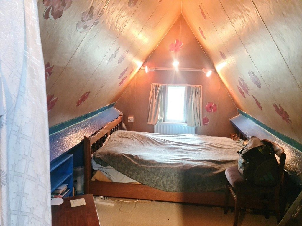 This top-floor bedroom is brimming with character and charm, setting it apart as a unique and delightful space within the home. The room’s distinctive shape adds to its allure with it’s fully vaulted ceiling it creates an interesting and cozy atmosphere. Despite its unique layout, the room is spacious enough to comfortably house a double bed, a chest of drawers, and additional furnishings. To maintain the room’s cozy ambiance, a very small double-glazed window is located at the far end. While it doesn’t flood the room with light, it provides a glimpse of the outdoors and adds a touch of quaintness. The room’s size and unique shape make it versatile, allowing for various arrangements and uses. Whether it’s a comfortable bedroom, a cozy reading nook, or an inspiring workspace, this room accommodates your vision.BACK OF PROPERTY BACK OF PROPERTY